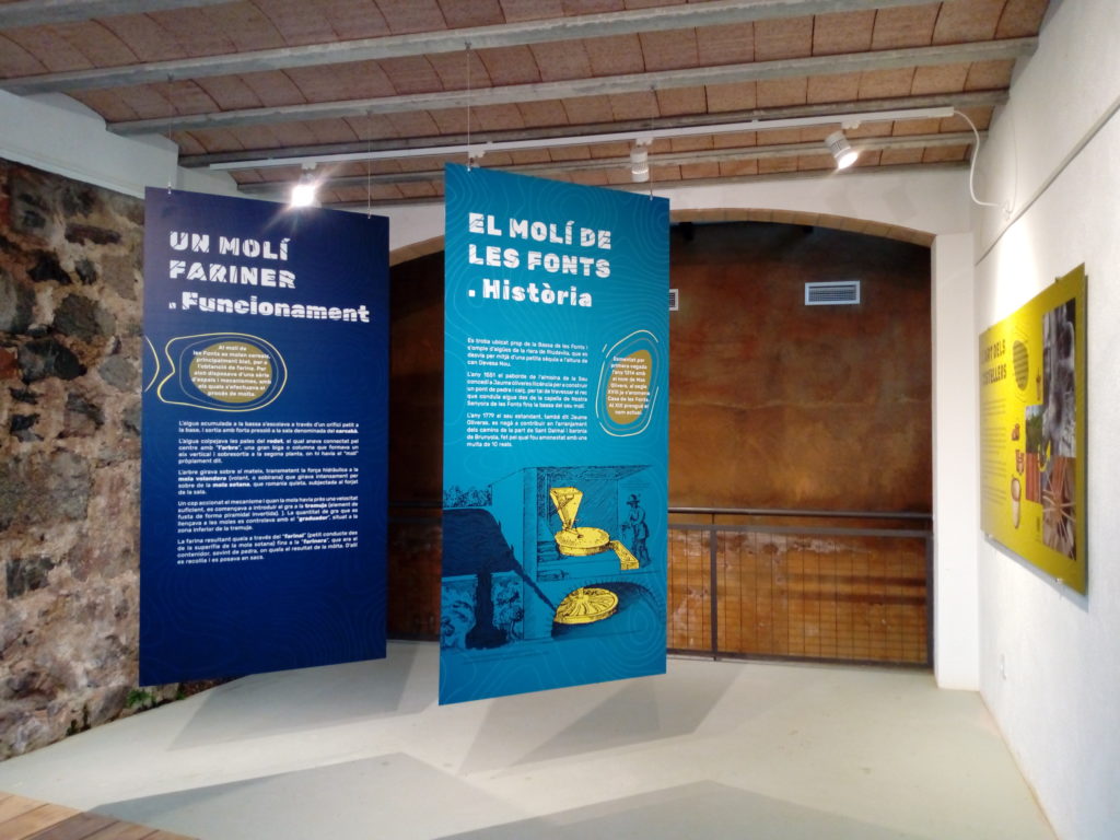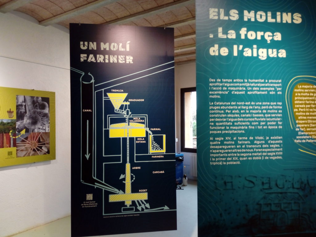 Elaboració dels plafons explicatius sobre la història i el funcionament dels molins de Vilobí d'Onyar.
