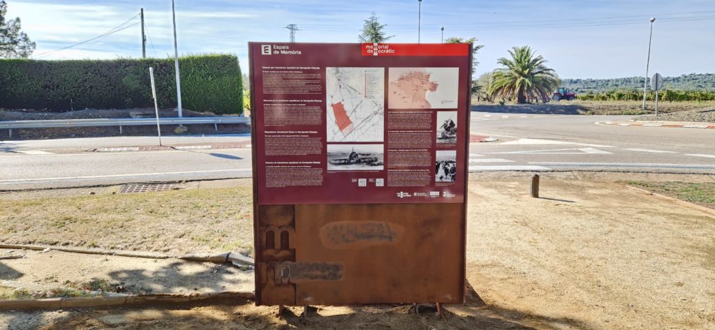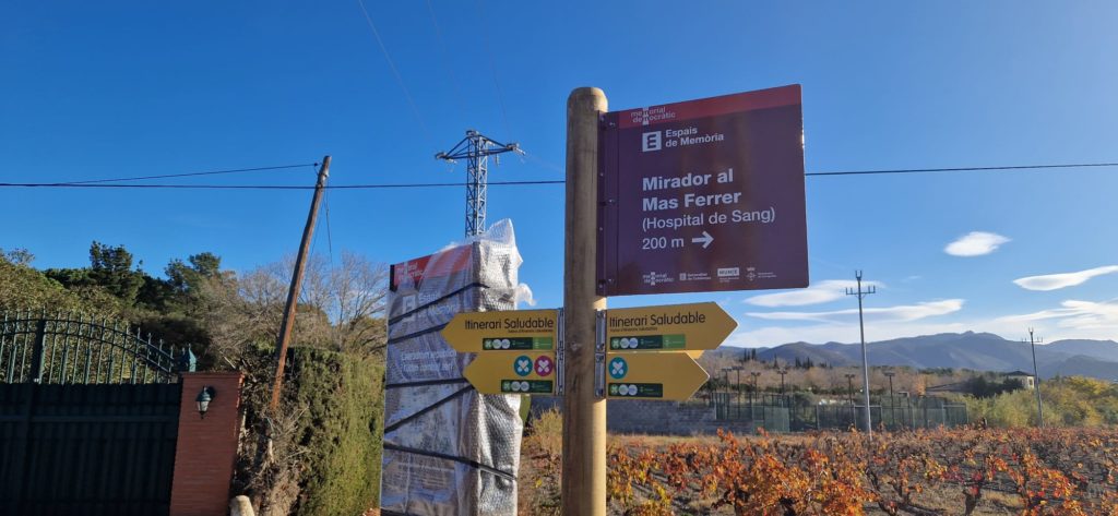 Disseny, maquetació de continguts, fabricació, transport i instal·lació dels elements de senyalització del Memorial Democràtic. Diverses tipologies de senyalització (banderoles direccionals, cartellera, faristol senzill) i placa homenatge a Garriguella.