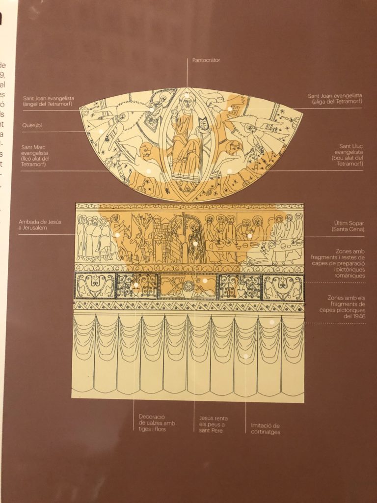 Elaboració de continguts, disseny, producció, fabricació i instal·lació d'un faristol interpretatiu de les pintures romàniques de Santa Eulàlia de Vilanova de la Muga. Panell amb la identificació de les parts més destacades dels frescos de l’absis