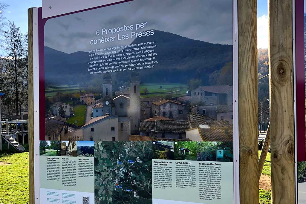 Realitzem plans de senyalització de forma integral. Treballem tots els aspectes del projecte com la redacció dels continguts, la gestió de codis QR, les traduccions a diferents idiomes, el disseny i la maquetació, la fabricació dels suports i el seu transport. Una senyalització per a pobles i municipis que dona valor als seus espais, edificis i indrets de major interès històric i cultural. També hi apliquem la perspectiva de gènere i els continguts amb il·lustracions pel públic infantil.